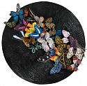 Oil and embroidered butterflies on wooden tondo