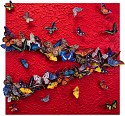 Free-form installation of embroidered butterflies