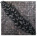 Coarse sand and pigment with embroidered butterflies on board