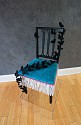 Metallic paint, velvet upholstery and cord, embroidery and appliqué on vintage chair